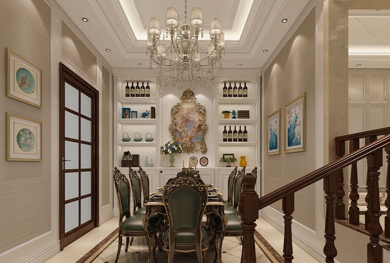 簡約俐落的質(zhì)材鋪敘與敞明大方的格局尺度,是歐式輕奢風(fēng)定調(diào)的設(shè)計居宅中,不可或缺的重要元素。在案例中,陳設(shè)藝術(shù)品及金屬線條材質(zhì)來營造大氣、自然、輕奢的裝飾美學(xué)氛圍。墻面、地面、家具陳設(shè)等均以簡潔的造型、精細的工藝為其特征,強調(diào)品質(zhì)感和細節(jié)處理。在色彩搭配方面以暖色為主,溫馨的客桌花束、明黃色的搭毯、直觀大氣的金屬材質(zhì),帶著淡淡的隨意,隨著輕輕的希冀讓人感受到的是空間彌漫的溫馨與舒暢。