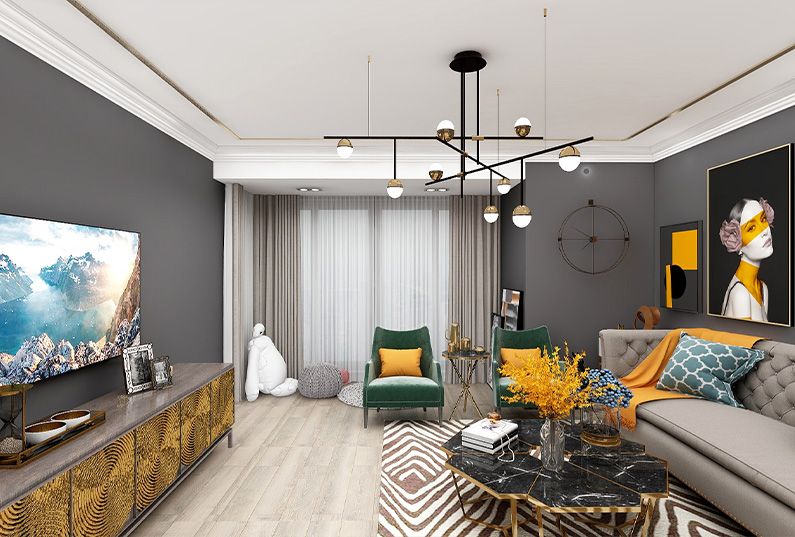 本案是一套美式簡約家居,客廳的設(shè)計簡約大氣、線條洗練,淡色系墻面、天花板、沙發(fā)與深色系的茶幾、墻紙相得益彰,賦予空間平衡之美 ;摒棄一切煩瑣和奢華,去掉零碎的空間劃分,去掉堆砌的顏色和擺設(shè),去掉繁復(fù)設(shè)計的家具,但整個空間看起來,卻又簡而不凡。