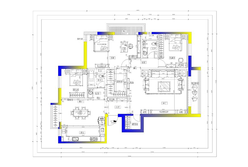 由于格局限制、書(shū)房、主臥空間較小、后期我把兩個(gè)空間打通、這樣把功能設(shè)計(jì)為一體、在空間上也能夠合理的利用、功能性的使用也有保留、在主臥也增加了一個(gè)衣帽間、原本三個(gè)衛(wèi)生間、把一個(gè)衛(wèi)生間改為了衣帽間、保留了一個(gè)客人衛(wèi)、一個(gè)主人衛(wèi)、一個(gè)衛(wèi)生間改為了一個(gè)U子型的衣帽間、都是2.6高度、這樣就滿足了客戶擔(dān)心儲(chǔ)物的問(wèn)題、次衛(wèi)的設(shè)計(jì)采用的干濕分區(qū)、主要考慮使用方便及美觀性。