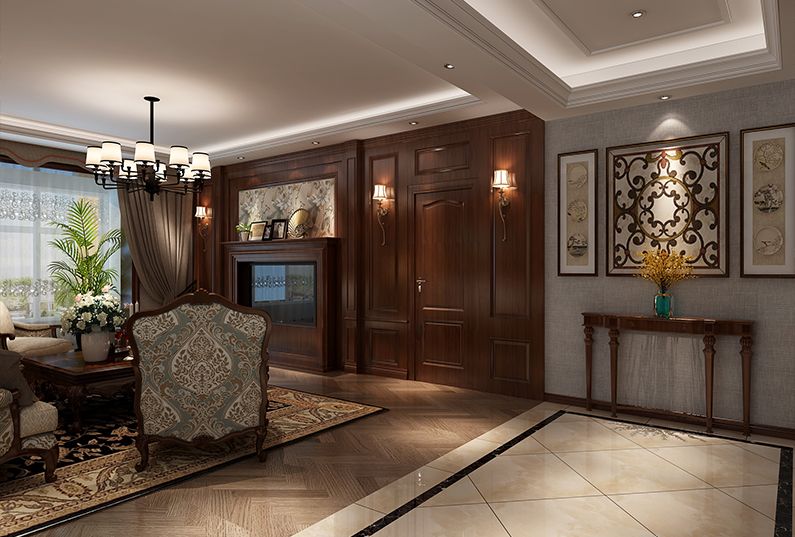 客廳選用壁爐及美式風(fēng)格壁紙點綴作為背景裝飾,給人一種平和恬靜之感,其細(xì)膩、光滑的表層,搭配深木色的家主臥強(qiáng)調(diào)簡潔、優(yōu)雅,淺色系的墻面搭配原木地板,木制家具給人沉穩(wěn)踏實之感,也能勾起人們懷舊情懷,這樣的暖色調(diào),營造了寧靜舒適的客廳氛圍。