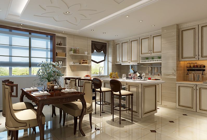美式桌椅搭配吊燈裝點出溫馨與舒適,又不缺乏時尚,通透的落地窗,給予了整個餐廳愉悅的就餐環(huán)境。