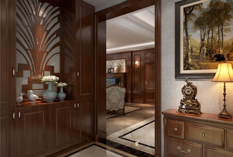 門廳的玄關(guān)設(shè)計,豐富了空間的層次感,雙手觸摸于實木紋理的拉門上,感受實木散發(fā)的魅力;充分利用空間,將其作為儲物空間,從而滿足了居家生活上的需求。