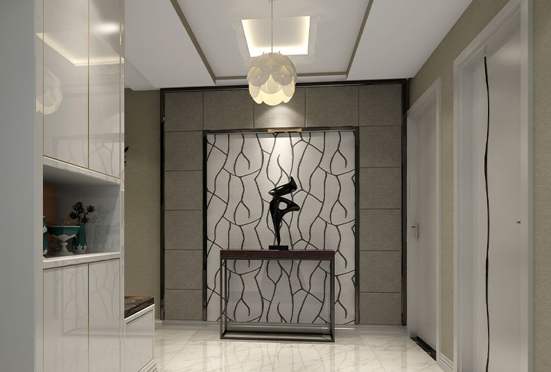 在門廳設(shè)計(jì)玄光取景,內(nèi)嵌式設(shè)計(jì)衣帽柜,方便衣物的整理擺放,儲(chǔ)物柜的設(shè)計(jì)增加了儲(chǔ)物空間,穿鞋凳搭配鏡子的設(shè)計(jì)讓生活更加便捷。