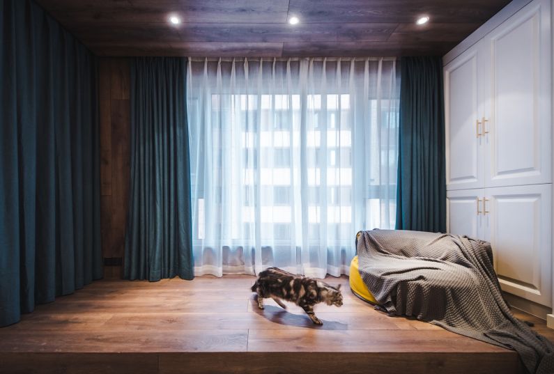 由于業(yè)主的居住需求,整體以暖色為主彩沖擊整個居室。客廳以瓷磚為主,瓷質(zhì)釉面磚的折射中合整個客廳的采光,以柔和的光感渲染。臥室木地板為地面主要元素,溫和。
