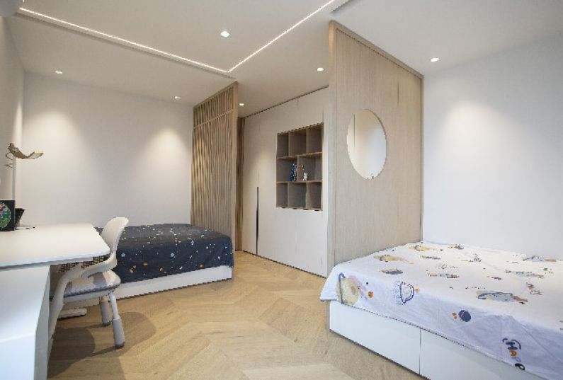 兒童房:兒童房是隨性可安靜的,是活潑與趣味的空間,兩個床可獨立,衣柜書柜功能,兩個學習桌,風景里讀書,一起成長的快樂。陪伴是彼此的相守,長高是彼此的約定。
