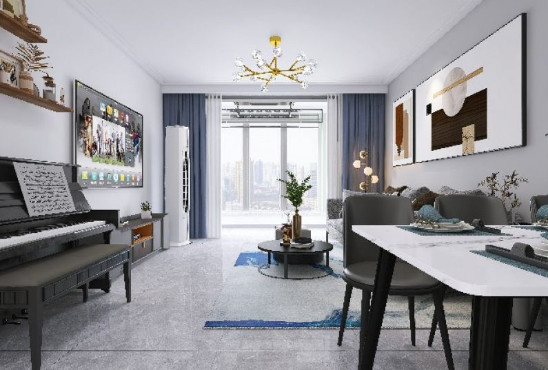 客廳比例比較寬敞,以便最大限度地利用空間。視覺空間看起來很寬敞,燈光效果也很好。客廳家具方面,建議采用灰色色調(diào)和金屬元素點(diǎn)綴,營造平靜而不失時(shí)尚氛圍。至于對(duì)于地板的裝飾,可以選擇感覺非常舒適的木制地板來裝飾,使整個(gè)客廳顯得簡單舒適,顯露出一種奢華感天然大理石也是在輕奢風(fēng)格中常常應(yīng)用,能讓家庭裝修更為奢華。