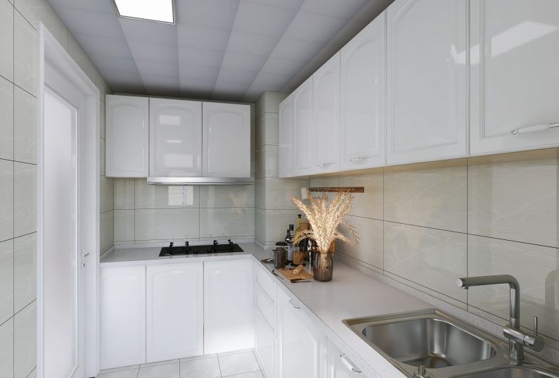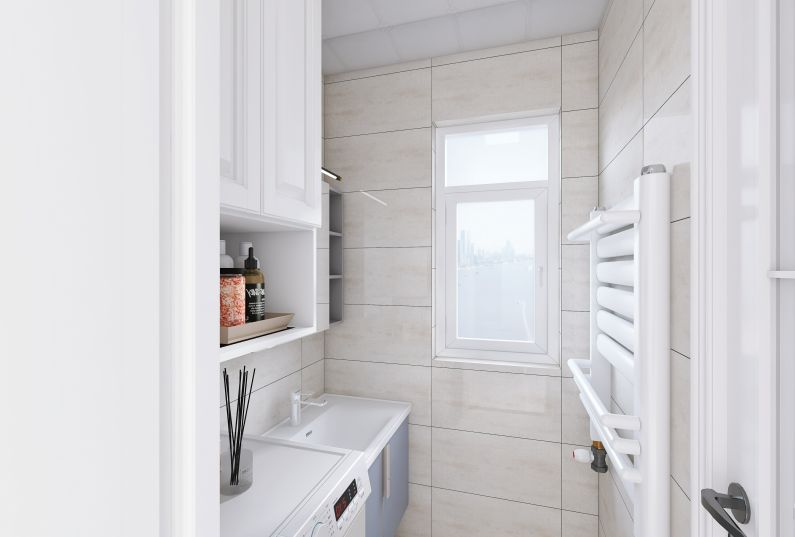 整體色調淺色為主,地面采用瑞士白的大地磚,使整個空間明亮、簡潔、清爽。