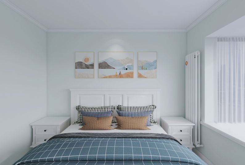 客廳沙發(fā)采用L型純棉材質的沙發(fā),藍白相間的色彩條紋。配以白色雕花的電視柜。讓人想到蔚藍海岸 與白色沙灘、希臘白色村莊在碧海藍天下閃閃發(fā)光。