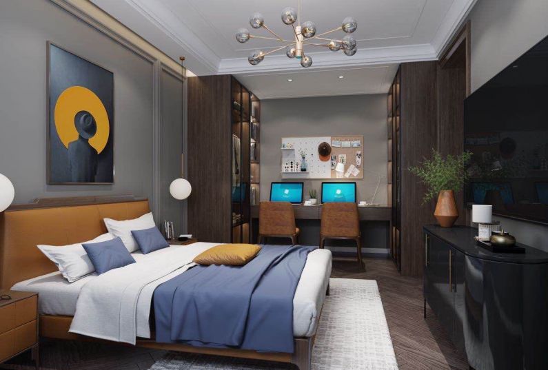 2. 次臥設(shè)計(jì)成套間形式,格局上改為整體衣帽間兼臥室形式