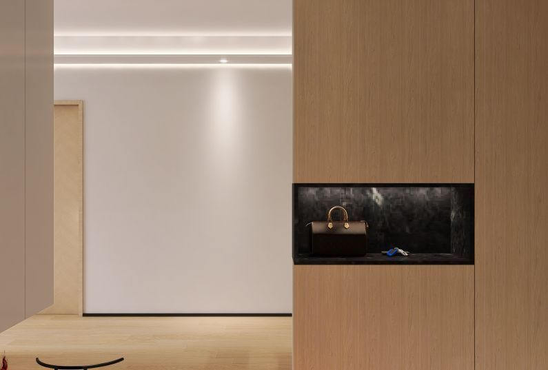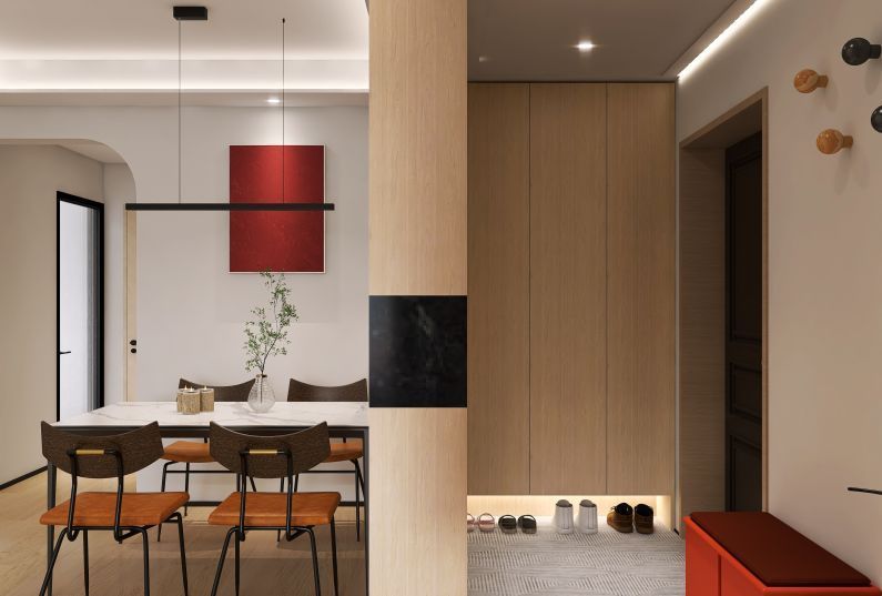 空間以木色為主色調(diào)、點綴黑色,增加空間的層次感。簡約的造型設(shè)計,搭配舒適的家具,呈現(xiàn)出簡潔明快自然的居住空間。