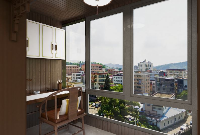 該戶型擁有一個(gè)行對(duì)較大的陽臺(tái),落地窗并且陽光很好,所以陽臺(tái)女業(yè)主著重想要一個(gè)休閑的功能區(qū)域。使頂面嵌燈帶木格柵和墻板,以及同色的地臺(tái)加坐墊的形式,打造一個(gè)休閑陽臺(tái)。