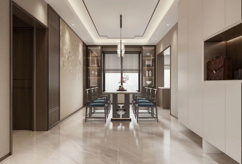 這個設計風格為中式,添加了一些現(xiàn)代的元素,讓古典中式看起來不那么呆板,