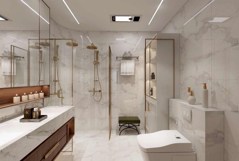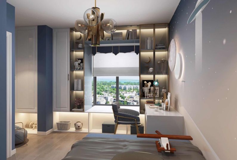 臥室空間也是多采用石膏線條。大的雙人床旁邊有嬰兒床,方便照看。陽(yáng)臺(tái)一個(gè)休閑沙發(fā),床頭的兩個(gè)吊燈也是很好的裝飾作用。主衛(wèi)淺色的瓷磚搭配金屬的衛(wèi)浴潔具。整體干凈整潔。