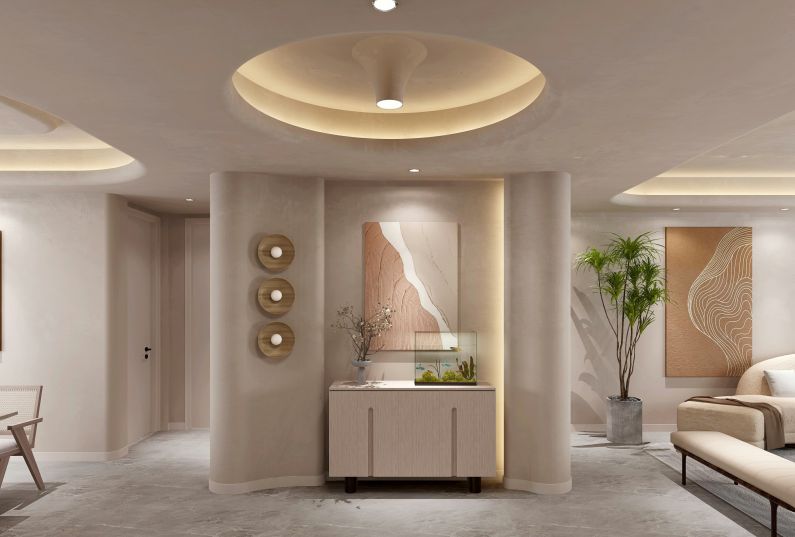 生活在當(dāng)下快節(jié)奏環(huán)境里,被碎片時間打擾的人們,相信很多人都需要一個靜謐的、親切的、放松的空間,本案大量運用了圓潤的、曲線的、飽滿的元素,營造一種人們喜歡的初始事物的,未經(jīng)過多修飾的,帶有治愈感空間,“幼態(tài)感”在本例里得到了充分的體現(xiàn),同時,也喚醒了人們可以徹底放松,可以安安靜靜的生活的心靈。