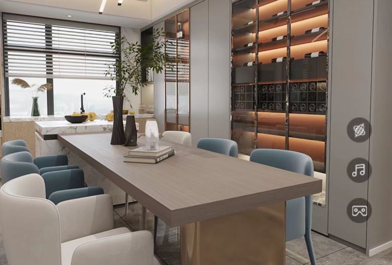 餐廳的設(shè)計(jì)做了大量的功能性,酒柜,倒臺(tái),以實(shí)用為主,簡單又美觀。