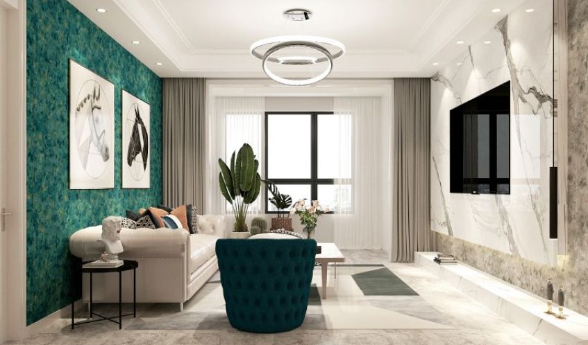 2.客廳:作為家庭生活活動區(qū)域之一,本案電視背景墻的設(shè)計是整個住宅空間的亮點,運用了巖板、藝術(shù)壁布裝飾材料,營造出現(xiàn)代化空間。另一個亮點是沙發(fā)背景,采用同款壁布不同顏色整體凸顯主人個性特點,相互呼應(yīng),運用了歐式沙發(fā)及配飾與現(xiàn)代相結(jié)合。