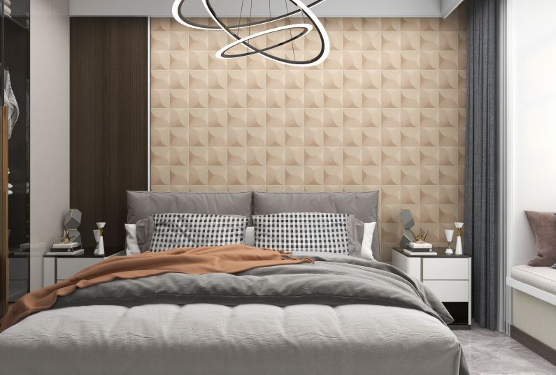 主臥、次臥。整體墻面鋪貼壁布,具有吸音降噪效果,有利于人的睡眠。床頭背景墻,墻咔、LED及壁布,用不同的材質(zhì)及軟裝配飾,考慮固有的溫暖和質(zhì)感,以充分表達(dá)光線和空間。
