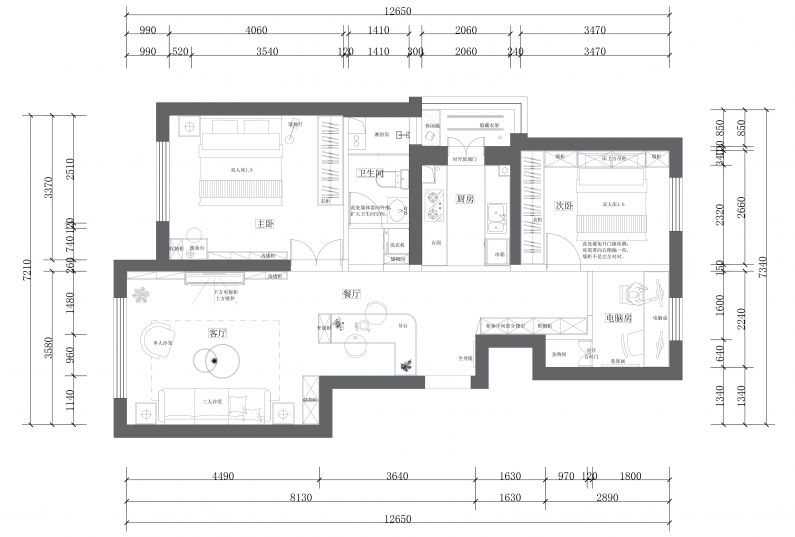 本項(xiàng)目的戶型三室一廳,南北通透,功能分區(qū)較為合理。