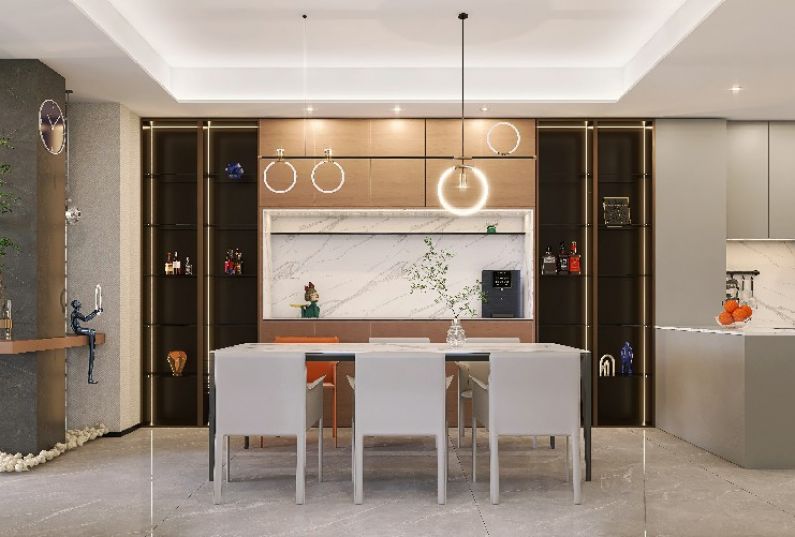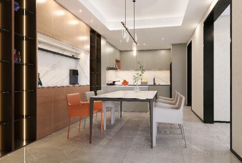 每處空間都把握了一個“度”,不空不滿,保留空曠的感覺又有布置溫馨的場景化區(qū)域, 我們將他們想要的設(shè)計感和實用性結(jié)合,用繽紛的色彩布置出一個兼具平淡生活與樸素夢想的浪漫之家。以利落的現(xiàn)代風(fēng)為基礎(chǔ),挑選亮眼的跳色,與空間的線條相呼應(yīng),打造出一個活力滿滿的全新空間。