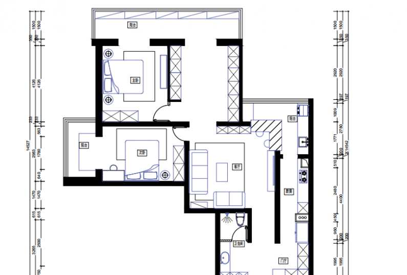 本案例原始戶型是3室1廳1衛(wèi),考慮到只有老人與小孩兒居住,且需要增加儲物空間功能,因此考慮到將原有的次臥與客廳打通,打造出一個大空間的開放式衣帽間,同時具備衣帽間與休閑區(qū)的功能;