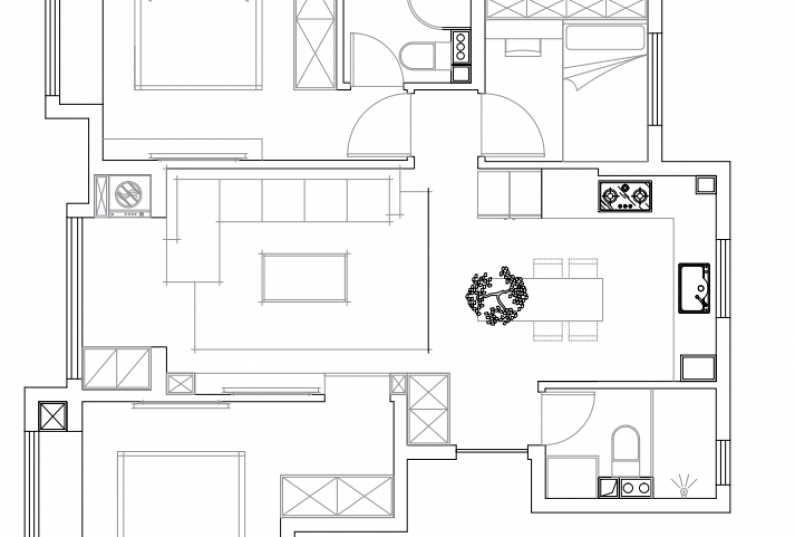 客戶是典型老兩口,退休干部,有中式情愫,追求的更多是舒適,臥室兩間足夠。所以,希望其余功能間的劃分能更細(xì)致,更多樣。