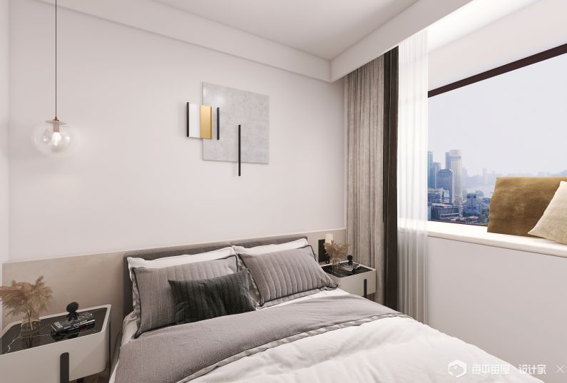 次臥:年輕業(yè)主的獨(dú)立空間運(yùn)用,再兩個(gè)人同時(shí)需要辦公居住的時(shí)候可以有效區(qū)域劃分?;A(chǔ)功能的滿足同時(shí)兼并效果的一致。