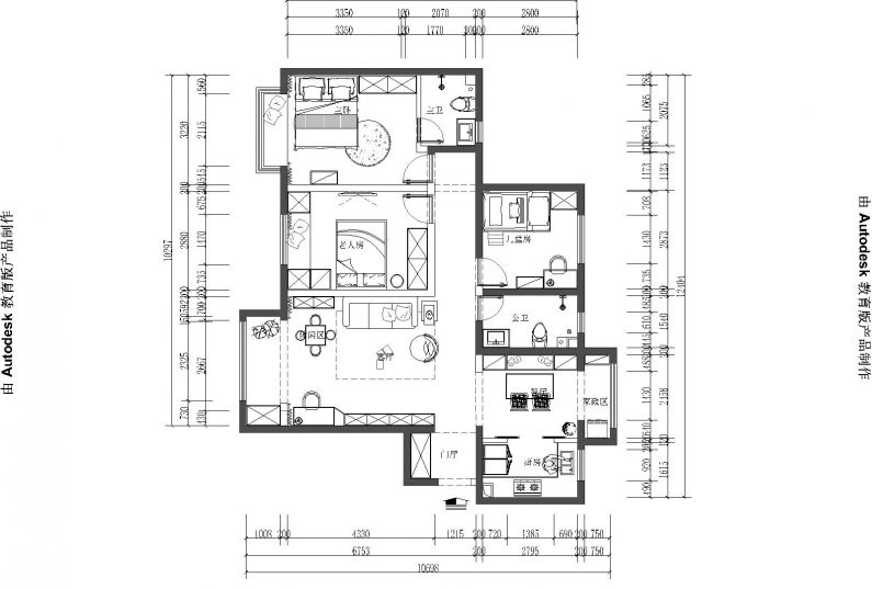 原始戶型有三個(gè)臥室,分別作為主臥 老人房 兒童房。