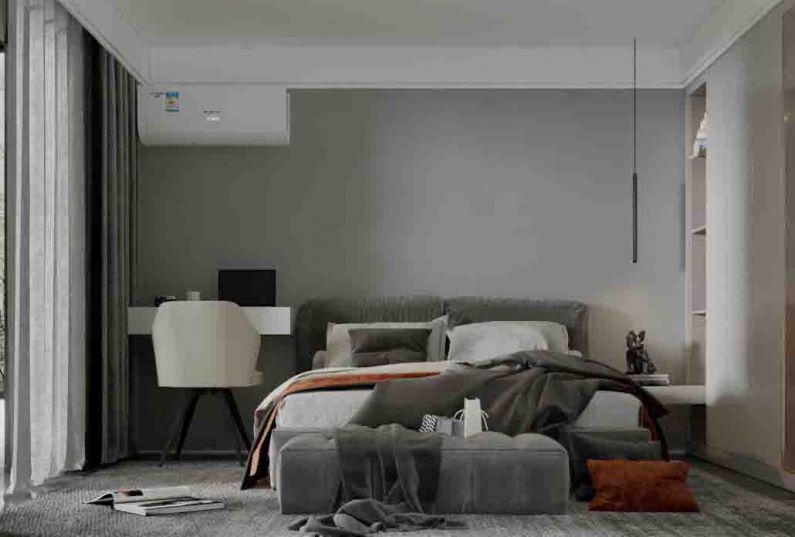 主臥:主臥主色調(diào)以灰色為主,線條簡約立場,注重整體的功能性。用燈光的溫潤、線條的輕盈、色彩的柔和,各類柔潤元素在空間中形成韻腳,雖是冷色調(diào)為主的空間,依舊能串聯(lián)營造出親切的情緒。一寸一寸的光蕩漾其間,寧靜中有雅,盡顯內(nèi)斂。臥室的床尾榻彰顯出大氣中又不失生活的趣味。有紋理的軟包,藝術(shù)感十足的燈具,每一處細(xì)節(jié)都體現(xiàn)著質(zhì)感。設(shè)計(jì)師以生活作為背景與空間感覺充分融入其中而設(shè)計(jì)出更有質(zhì)感的生活美學(xué)空間。