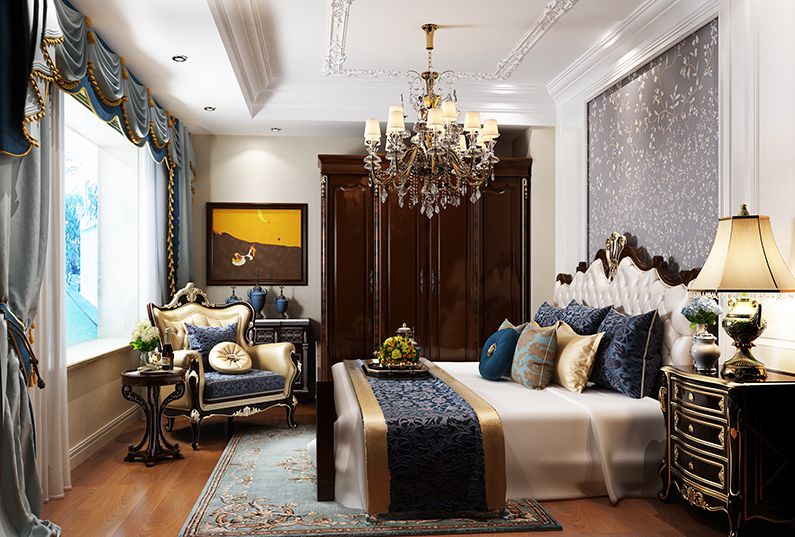 因此在設計上,不可一味地追求奢華,而更多的是從使用者的角度考慮,這套案例從布局的設計體現出主人的個性、優(yōu)雅的生活情趣。基于合理的平面布局,著重于細節(jié)和功能處理, 使用石材、鐵藝、軟包、壁紙、太陽線、涂料等來營造宮廷版的居室環(huán)境。
