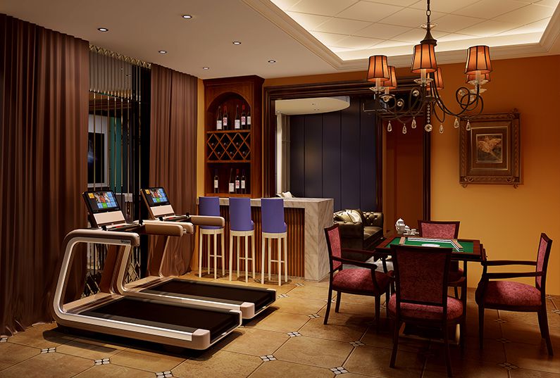 【地下室】 地下室主要為業(yè)主提供一個休閑健身的娛樂場所,影音室、吧臺、麻將室、健身房空間相互交織功能相互補充。為業(yè)主提供了多種聚會休閑的小場景,為娛樂和多種朋友之間的溝通提供選擇。